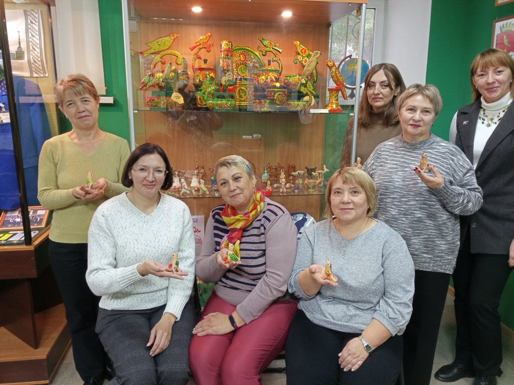 Раскрасить на свой вкус глиняного соловья забавно не только детям. Школьные библиотекари, проходящие повышение квалификации в КИРО, тоже это попробовали.