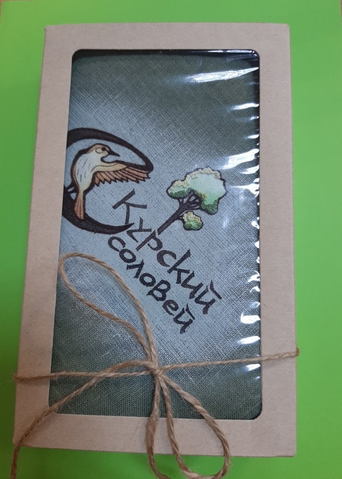 Вот такой подарок нам сделали друзья из отеля «Курский соловей», нашего тёзки. Сервировочная салфетка пополнила коллекцию экспонатов-даров-эксклюзивов.